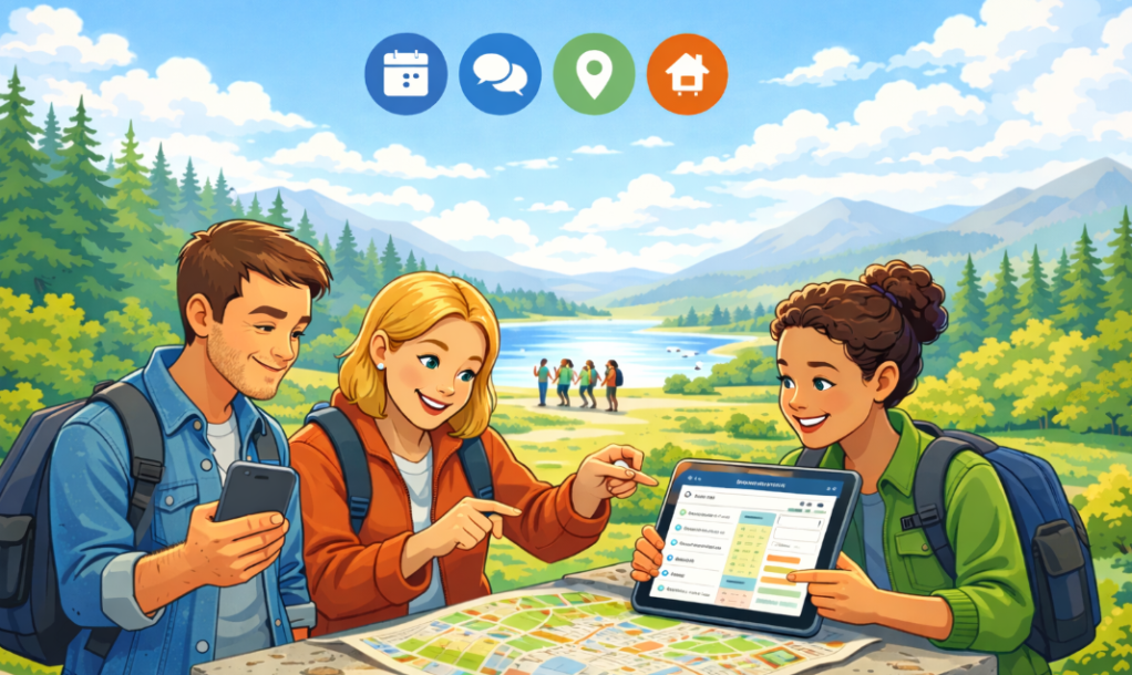 Teachers can create trips, invite students with a simple code, and manage everything from schedules to communication in one structured system — directly in the browser, with no installation required.